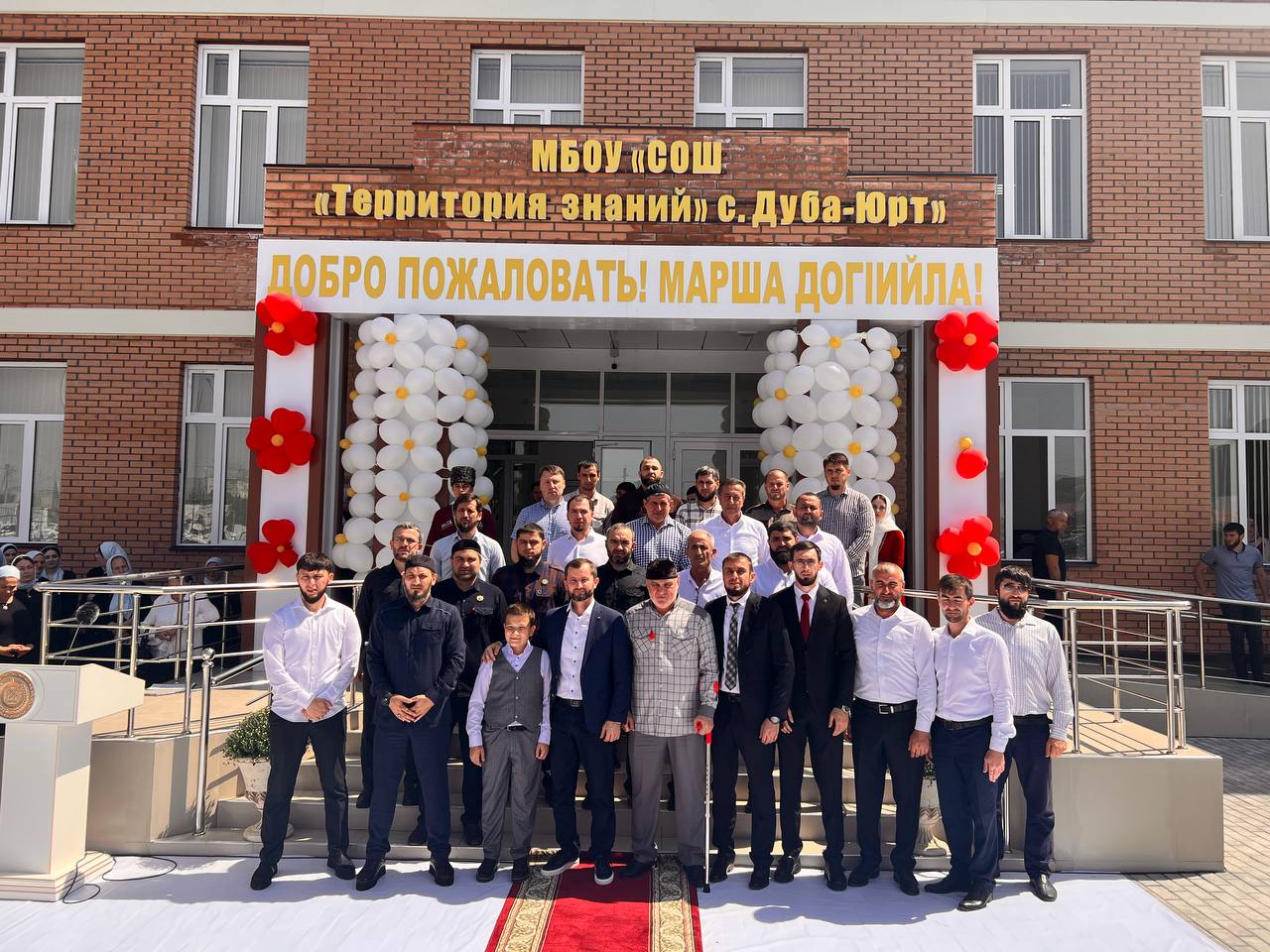 Глава администрации Шалинского муниципального района - Иса Борщигов. А также представили районного отдела образования и учителя и директора районных школ. Гости поздравили учеников, учителей и всех жителей села с открытием такой великолепной школы и выразили слова напутствия!
