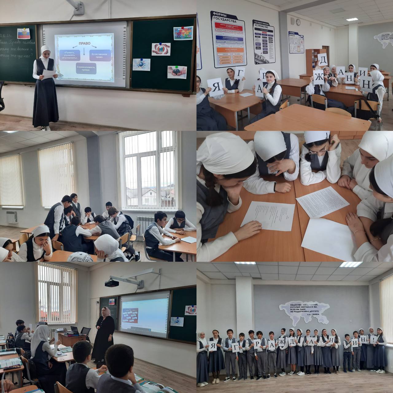 Учительница обществознания Зарема Муталиева провела Всероссийский единый урок на тему «Права человека» в этом году урок приурочен к 30-летию главного документа нашей страны Конституции Российской Федерации а также 75-летию Всеобщей декларации прав человека.