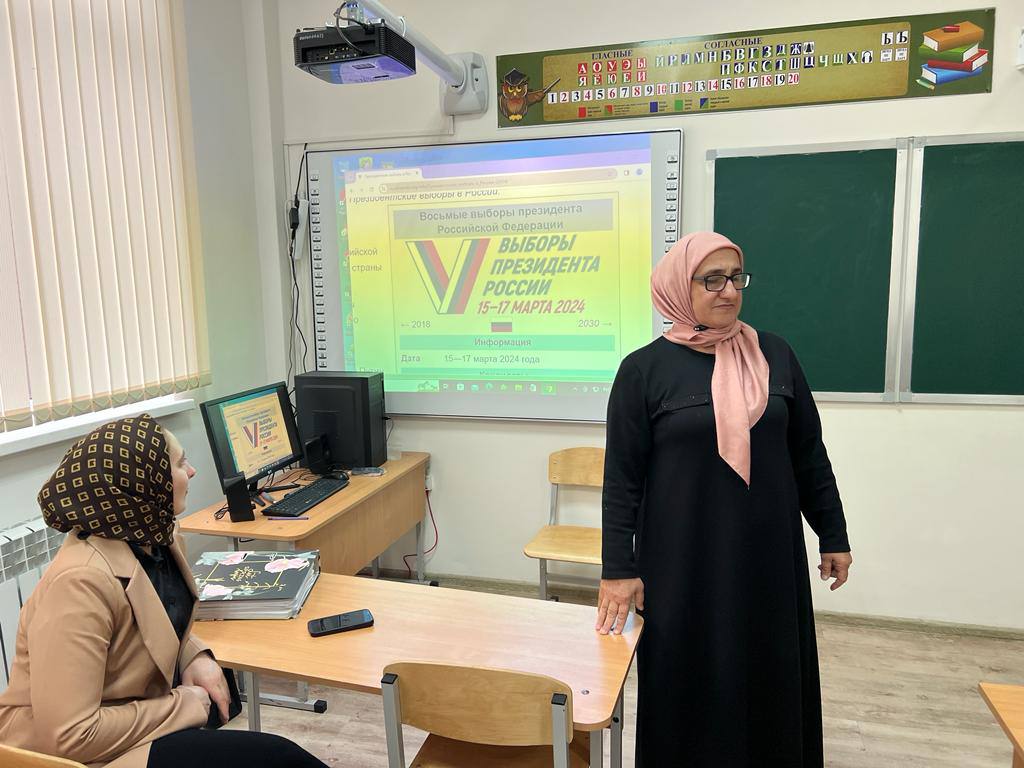 27.02.2024В рамках исполнения п.4 протокольного поручения Главы Чеченской республики Р. А. Кадырова от 15.01.2024г №01-01 в МБОУ "СОШ "Территория знаний " с. Дуба-Юрт" зам. директора по ВР Дадаева Т.С.-Э. провела беседу по информированию сотрудников школы о предстоящих выборах Президента Российской Федерации.